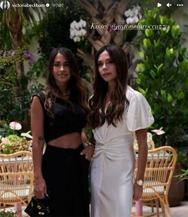 梅西的爱人安东内拉和贝嫂维多利亚一起出席时装秀,梅西在迈阿密踢球,贝克汉姆是迈阿密国际的创始人和俱乐部主席,所以安东内拉和维多利亚的关系也很好。维多利亚在社交媒体上晒出两人的合影,配文:“亲亲安东内拉”