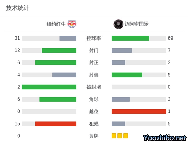 全场比赛结束,迈阿密国际0-4纽约红牛!