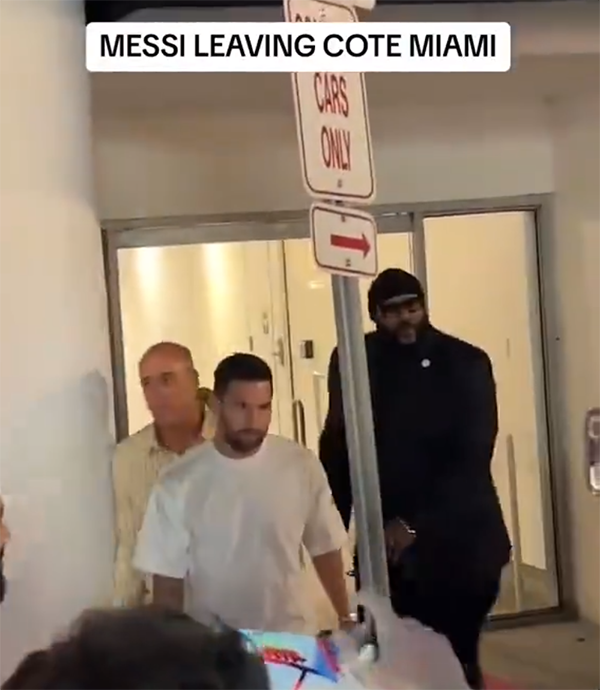 得知梅西将会在餐厅出现,不少球迷已经蹲守在这里,现场的人很多。梅西的保镖严阵以待,梅西还没有下车的时候,迈阿密国际给梅西配备的保镖就已经下车检查安全情况,随后梅西和爱人安东内拉下车,球迷们疯狂了,梅西的保镖不离球王左右,严阵以待。