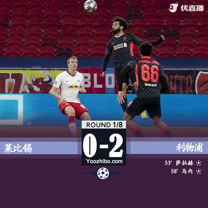 24直播网2月17日讯 北京时间2月17日凌晨4点,20-21赛季欧冠1/8决赛首回合,莱比锡在中立场地与利物浦展开交锋。上半时双方没有进球,奥尔默头球中柱,菲尔米诺进球因球先出底线被吹无效,马内头球、罗伯逊吊射险破门。下半时莱比锡连续出现失误,萨拉赫和马内5分钟内分别单刀破门,安吉利诺、黄喜灿失良机。最终,莱比锡0-2利物浦,利物浦获得晋级先机。