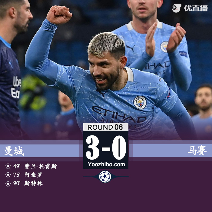24直播网讯:北京时间12月10日04:00(英国当地时间9日20:00),2020/21赛季欧冠C组第6比赛日一场焦点战在伊蒂哈德球场展开争夺,曼城主场3比0完胜马赛,费兰-托雷斯、阿圭罗和斯特林先后进球。曼城获得头名,携手波尔图晋级。