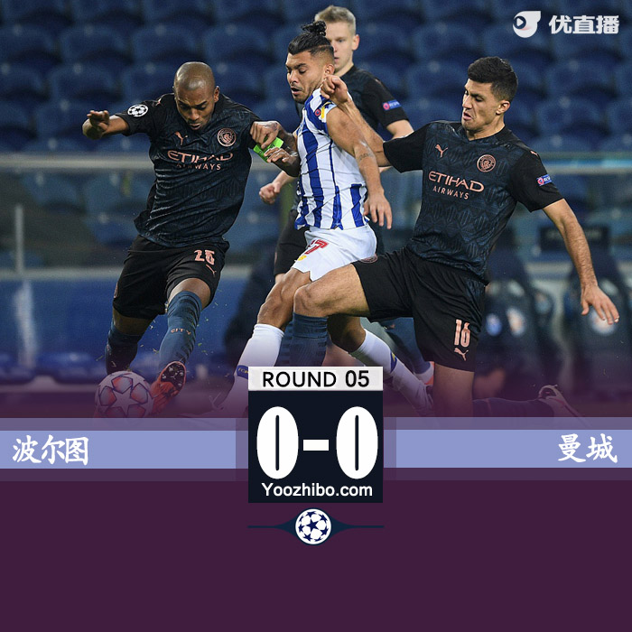 第87分钟,费尔南迪尼奥传中,热苏斯头球攻门高出。全场比赛结束,曼城客场0-0战平波尔图。