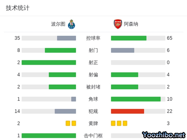 阿森纳0-1波尔图 枪手全场0射正&仅1次换人