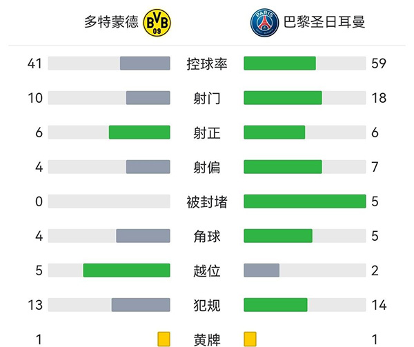 全场比赛结束,最终巴黎1-1多特。