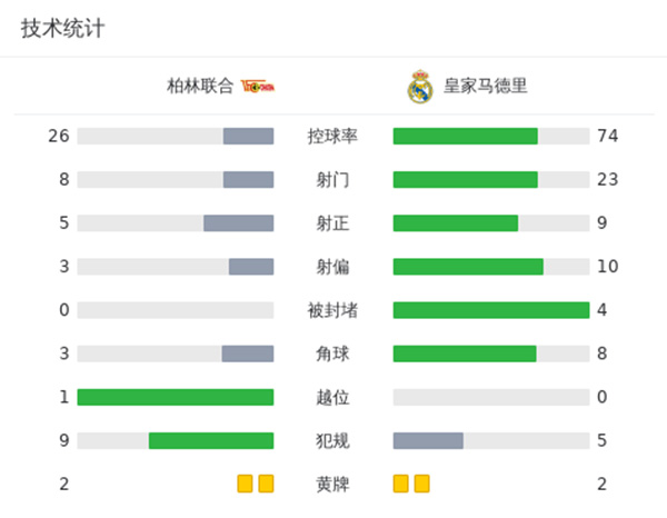 第86分钟,皇马后防出现混乱,莱多尼后插上远射破门,柏林联2-2扳平↓