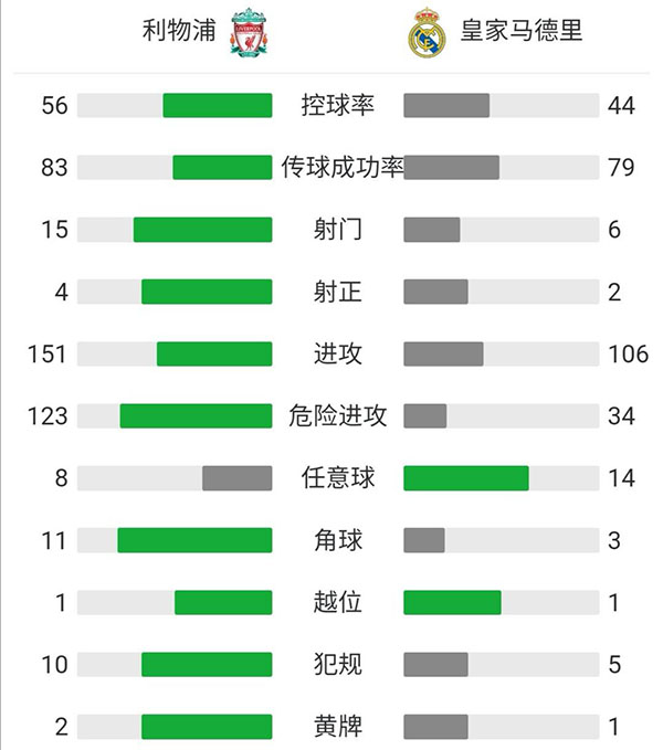 全场比赛结束,皇马0-0总分3-1利物浦进4强。