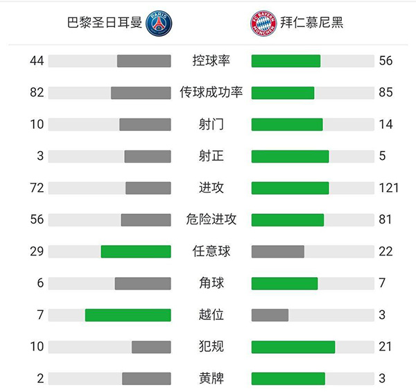 全场比赛结束,巴黎主场0-1总比分3-3拜仁,巴黎凭借客场进球晋级。查看:巴黎vs拜仁 全场录像