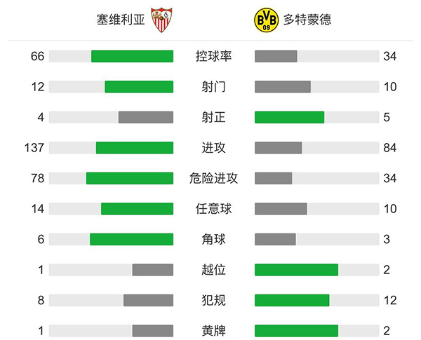 查看:塞维利亚vs多特蒙德 全场录像技术统计: