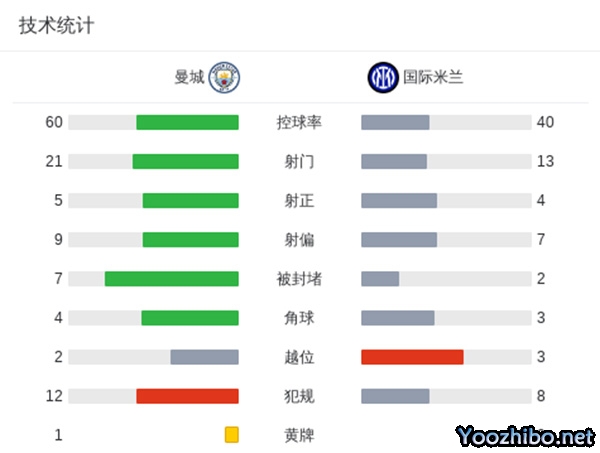 曼城0-0国米 德布劳内伤退达米安单刀回传两队35射未进球