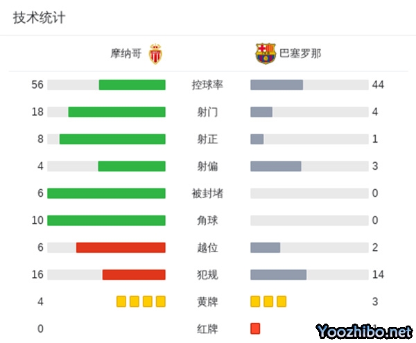 巴萨1-2摩纳哥 特狮送礼&加西亚染红亚马尔欧冠首球