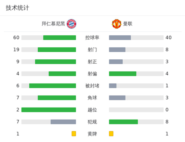 第31分钟,穆西亚拉一条龙杀入禁区后回敲,格纳布里顺势扫射得手,奥纳纳目送进球,拜仁2-0曼联!