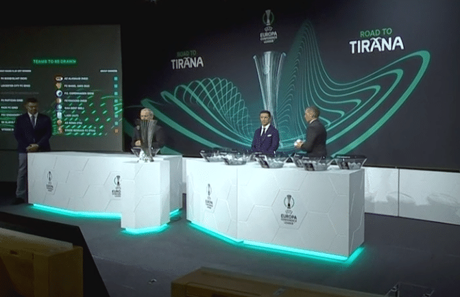 抽签仪式开始后,现场先是播放了一个短片来介绍各支球队,阿尔丁-拉拉担任抽签嘉宾,他是前阿尔巴尼亚前国脚,曾效力过德甲汉诺威96,阿尔丁-拉拉也是称赞了欧协联赛事,这给了很多球队表现自己的机会,在谈到自己看好那支球队的时候,阿尔丁-拉拉表示自己最看好罗马队,他们阵容很好,拥有夺冠的实力。