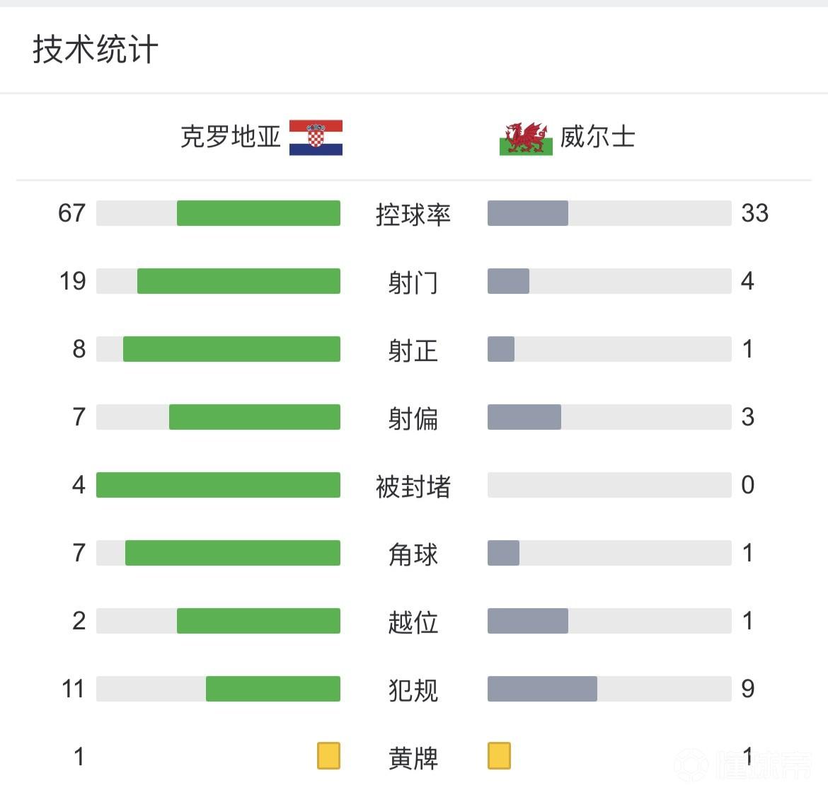 克罗地亚1-1威尔士 克拉马里奇远射破门