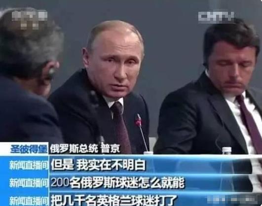 结果,普大爷诛心了,他轻描淡写的,我不知道发生了什么事情,但是有一点可以肯定的是打人是不对的,可是谁能告诉我为什么200名俄罗斯球迷能够把几千名英国球迷打了。这个回应也让英国记者绝望。