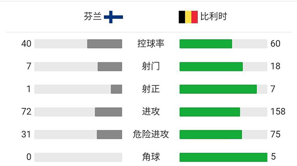 第73分钟,德布劳内开出左侧角球,维尔马伦头球击中门框,球弹回来后打在赫拉德茨基身上进入球门,赫拉德茨基乌龙球,比利时1-0芬兰。