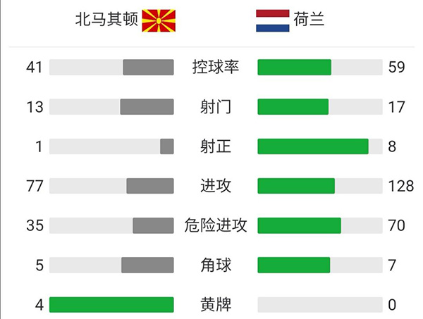 全场比赛结束,荷兰3-0击败北马其顿,以头名从小组出线。