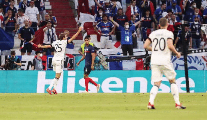 24直播网讯北京时间6月16日,欧洲杯小组赛首轮最后一场比赛,德国队面对法国队的比赛万众瞩目,最终法国队以1-0击败德国队,斩获球队在本届欧洲杯的开门红。上半场卢卡斯传中造成胡梅尔斯乌龙,这也是德国队历史上首度在欧洲杯打进乌龙球。之后德国队展开狂轰乱炸,可惜均未取得进球,下半场姆巴佩第66分钟取得进球,可惜越位在先。随后姆巴佩助攻本泽马进球,依旧是越位。最终法国队小胜德国队,拿下开门红。