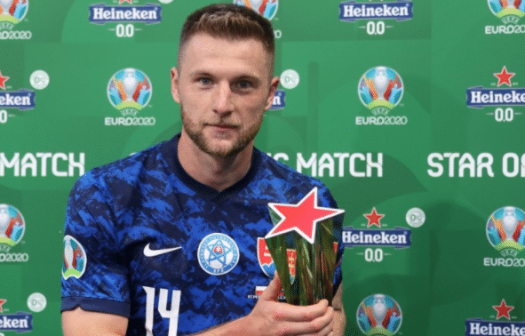 这场比赛斯洛伐克赢球的最大功臣要说是什克里尼亚尔,他在第68分钟完成绝杀,而绝杀的瞬间更是被称为本届欧洲杯的“名场面”。当时的情况是斯洛伐克队获得角球机会,队友们都在跑位,而禁区内的什克里尼亚尔卸球之后面对7名波兰球员的防守和上前封堵,直接凌空抽射,这个球也直接帮助斯洛伐克成功拿下胜利,这位名后卫在比赛中不仅上演名场面,还完成绝杀。