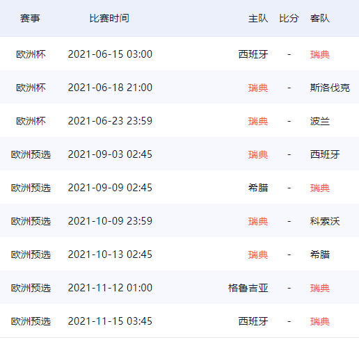 瑞典队欧洲杯26人球员大名单及赛程一览