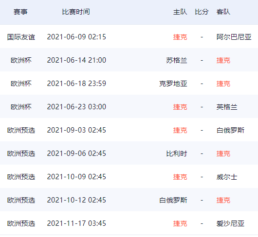捷克队欧洲杯26人球员大名单及赛程一览