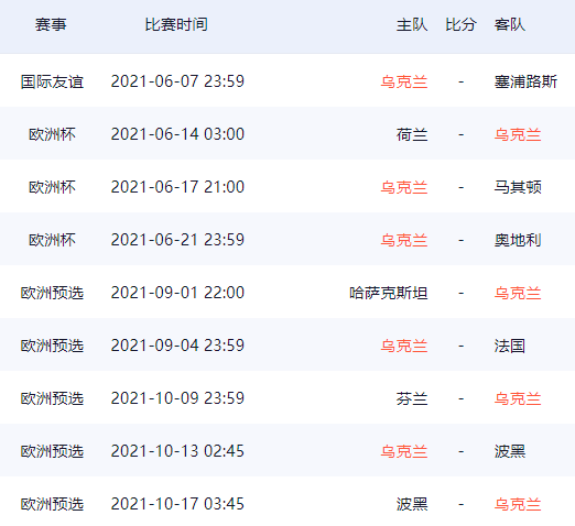 乌克兰队欧洲杯26人大名单大名单及赛程一览