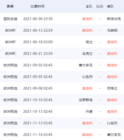 奥地利队欧洲杯26人球员大名单及赛程一览