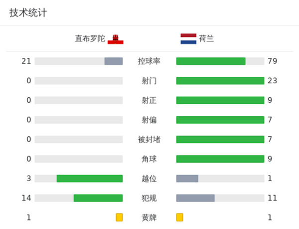 全场比赛结束,荷兰6-0直布罗陀!