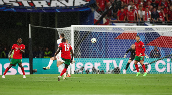 这场比赛的捷克队进攻做得很好,也一度率先破门,之后葡萄牙队处于绝境,赫拉纳克乌龙让葡萄牙队扳平比分。C罗是有机会的,一直到第87分钟,他的头球中柱,若塔跟上补射得分,但可惜C罗越位在先,进球无效。终于绝杀时刻来袭,替补出场的孔塞桑在伤停补时进球,现场葡萄牙队的球迷们沸腾了。