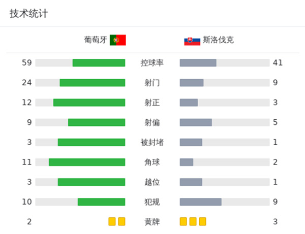最终葡萄牙主场3-2战胜斯洛伐克。