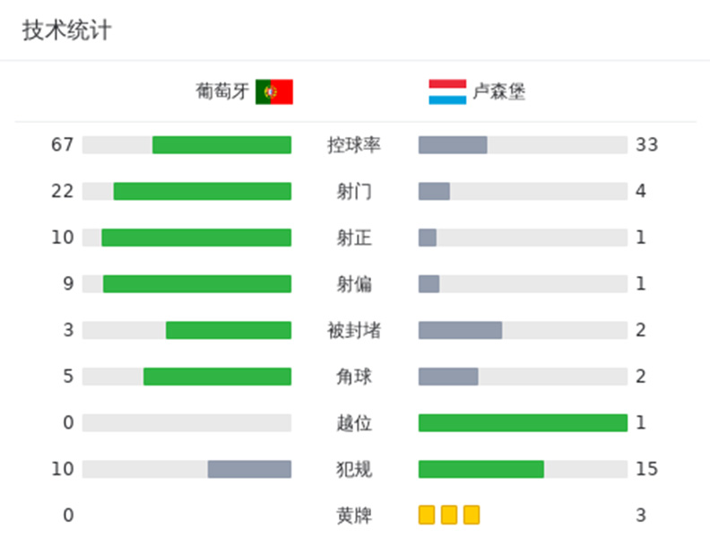 最终,葡萄牙9-0血洗卢森堡六连胜领跑积分榜。