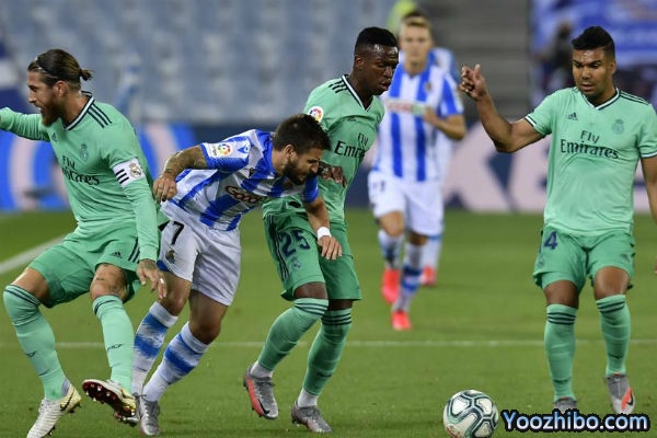 下半场易地再战,双方都没有做出换人调整。第50分钟,皇马首开记录,维尼修斯禁区左肋带球内切时被迭戈-略伦特从背后踢倒,裁判出示黄牌警告了皇家社会后卫,并且判罚点球,拉莫斯操刀主罚右脚推射得手,1-0。