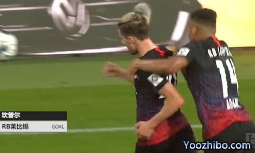 第60分钟,场上僵局终于被打破,坎普尔前场左侧带球内切,随后在大禁区外左侧忽然起脚兜射破门得分,莱比锡红牛领先,1-0!