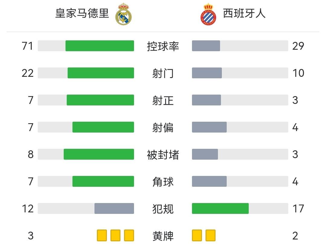 皇马3-1西班牙人 维尼修斯米利唐阿森西奥各入一球