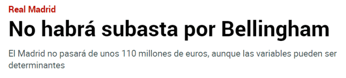 另外,贝林厄姆的薪水不会打破皇马的薪资结构,皇马对于球员的薪资奖金有明确的限制,球队阵中没有人薪水在税后可以超过2200万欧元。