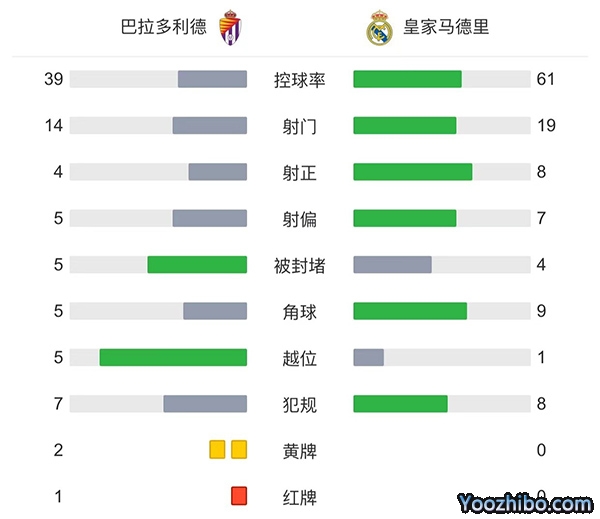 全场比赛结束,最终皇马2-0巴拉多利德,多赛一场暂时登顶积分榜。