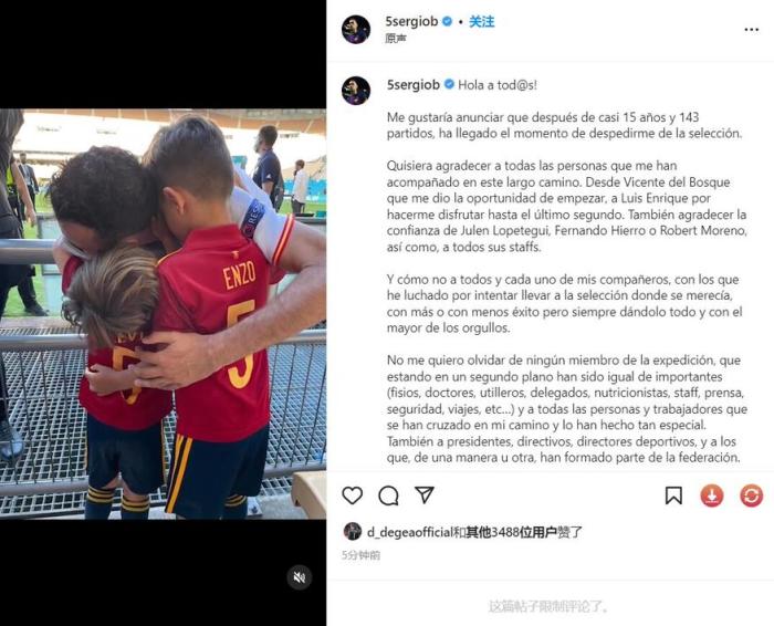24直播网12月16日讯 西班牙34岁老将布斯克茨通过社交媒体宣布,他将退出西班牙国家队。