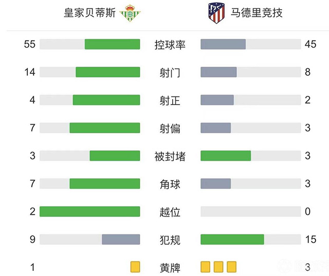 全场比赛结束,马竞2-1贝蒂斯。