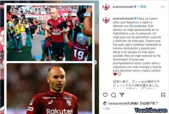 24直播网07月24日讯 今日,西班牙球星伊涅斯塔更新了个人社媒,纪念自己上演神户胜利船首秀的4周年纪念日。