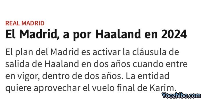24直播网06月17日讯 ,据《阿斯报》报道,皇马想要在2024年激活哈兰德的解约条款,以1.5亿欧签下他。