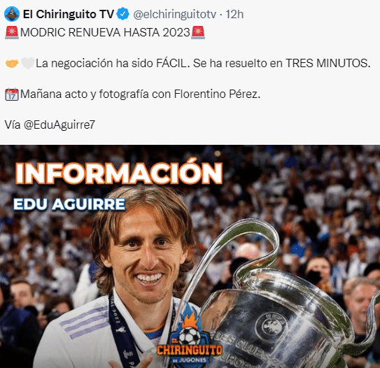 六台还指出,莫德里奇和皇马可能在今天就签约并合影。