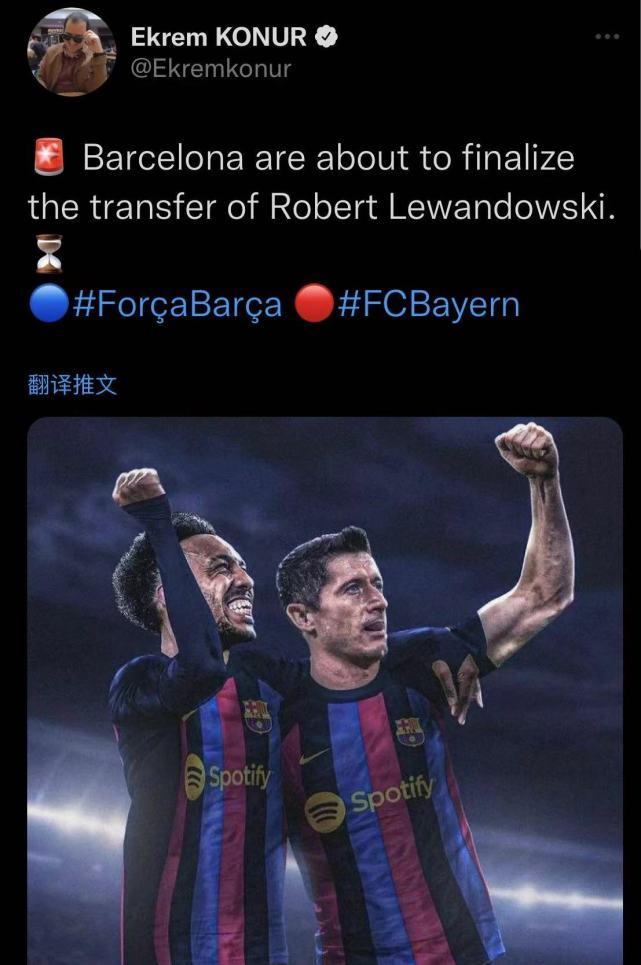 24直播网05月15日讯凌晨,来自知名记者Ekrem Konur的最新消息,效力于拜仁的波兰神锋莱万,加盟巴萨已经进入倒计时。为了强调进度,他还加上了一个沙漏(倒计时)的表情。巴萨跟队记者罗梅罗也证实,巴萨现在有80%的几率在今夏签下莱万。