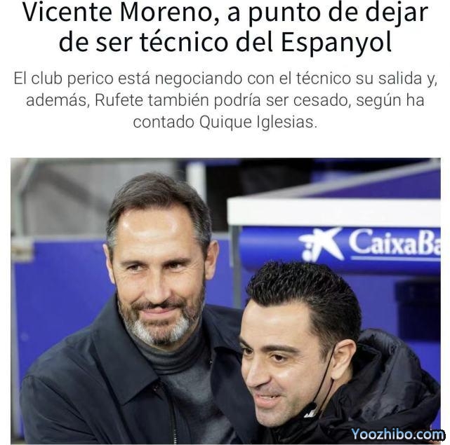 24直播网05月13日讯 ,来自《塞尔电台》、《科贝电台》等多家西班牙媒体的消息,西班牙人队主帅莫雷诺即将被解雇。西班牙人将在本周六赛前,官宣这一决定。本月15日0点30分,西班牙人将在西甲第37轮坐镇主场迎战瓦伦西亚,这将会是莫雷诺在西班牙人队最后1个主场比赛。
