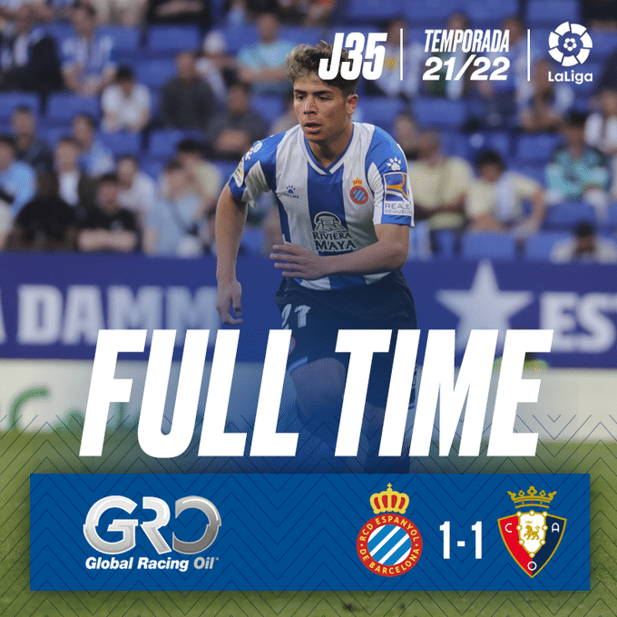 24直播网05月09日讯北京时间今天凌晨,西班牙人在西甲第35轮1-1战平奥萨苏纳,武磊首发出战但半场就被换下,以下为他上半场的数据。
