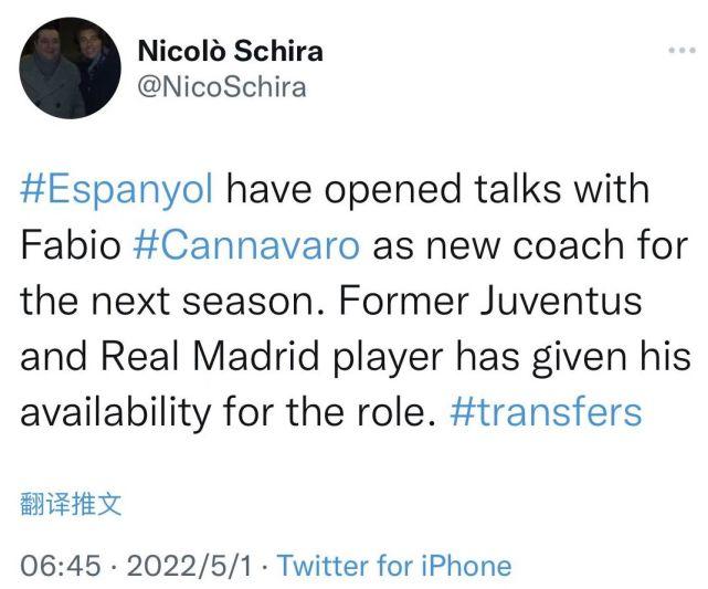 24直播网05月01日讯 ,来自斯基拉、迪马济奥等多位欧洲足坛转会专家的最新消息,西班牙人正在考虑今夏换帅,他们有意邀请前恒大主帅卡纳瓦罗下赛季执教球队。