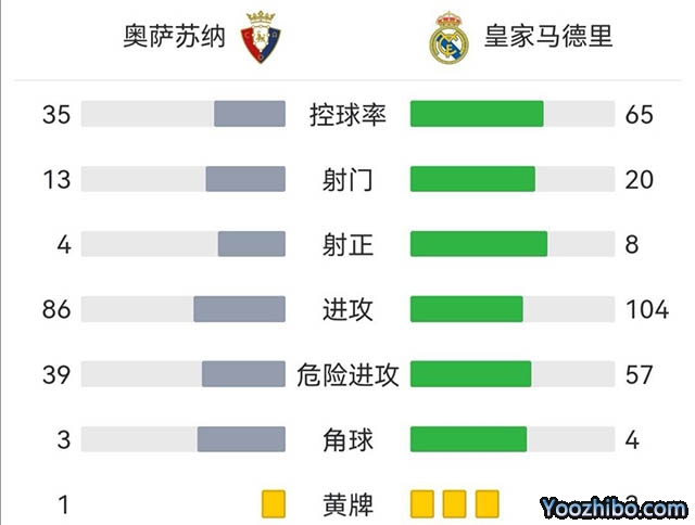 全场比赛结束,最终皇马客场3-1奥萨苏纳。