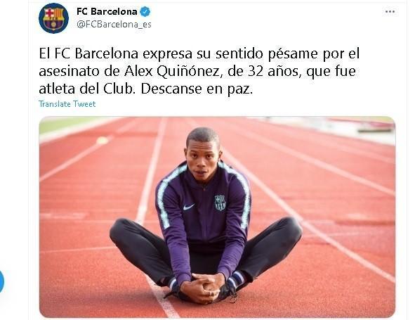 24直播网10月24日讯据巴萨官方消息,俱乐部的短跑运动员奎诺内斯本周五在厄瓜多尔遭枪杀。