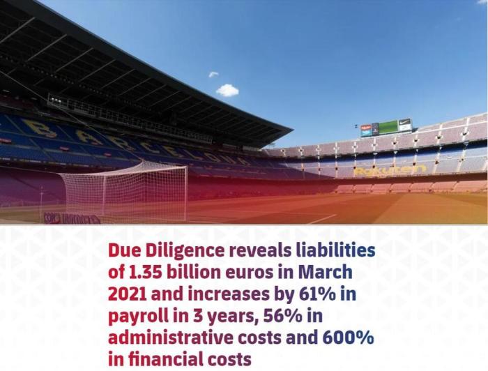 根据调查显示,截止至2021年3月,巴萨净负债为13.5亿欧元,3年来工资增长61%。