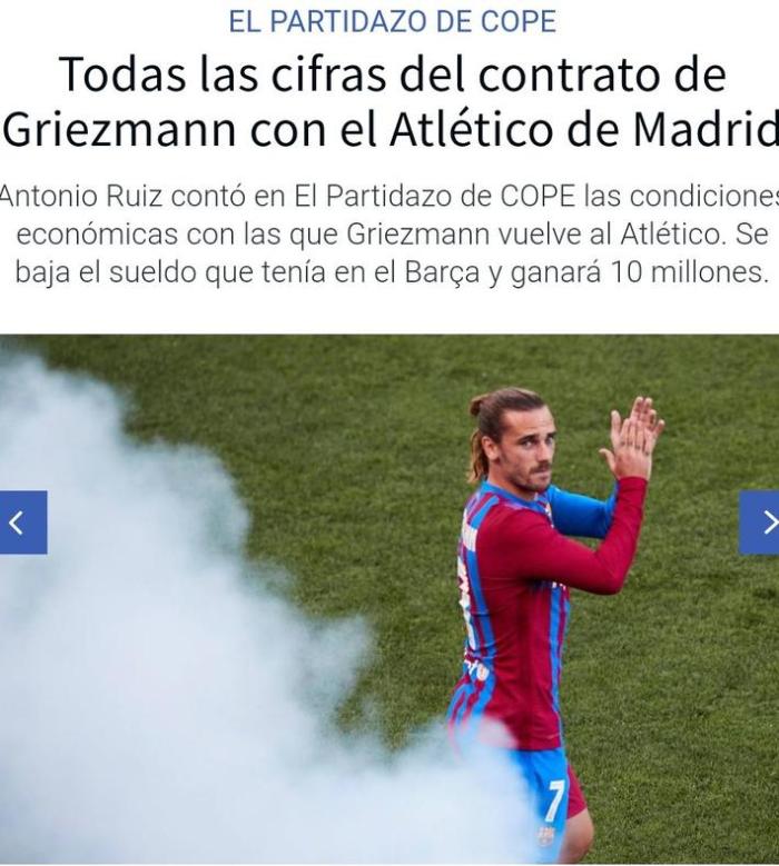 24直播网9月02日讯 ,据《科贝电台》报道,格列兹曼本次回归马竞降薪到1000万欧,另外马竞方面也支付了1000万欧元的租借费。