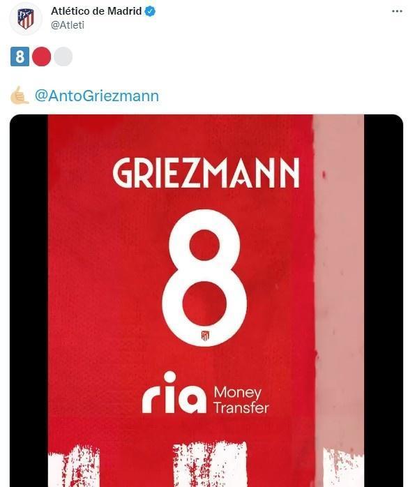 24直播网9月02日讯 ,据马竞官方消息,格列兹曼新赛季将身披8号球衣。马竞8号此前属于萨乌尔,萨乌尔在昨日租借加盟至切尔西。