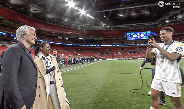 次日的欧冠决赛中,弗爵与尤文图斯前主帅阿莱格里和意大利名宿皮尔洛一起在温布利观战。现场还有其他前曼联主帅,如穆里尼奥。穆帅不仅是曼联前任主帅,也曾执教过最终夺冠的皇马。比赛结束后,银河战舰巨星贝林厄姆找到葡萄牙狂人,希望他与母亲合影。